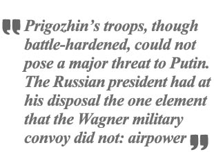 It has been reported that the United States intelligence community was aware of Prigozhin’s intentions to launch an armed assault against the Kremlin. By June 21, American intelligence officials had briefed the White House and key members of Congress of an impending putsch by Wagner. The briefings almost certainly made clear that Prigozhin’s troops, though battle-hardened and well-armed, were unlikely to pose a major military threat to Putin. The reason is that the Russian president had at his disposal one critical element that the Wagner military convoy lacked: airpower. The Kremlin would be able to wipe out the
